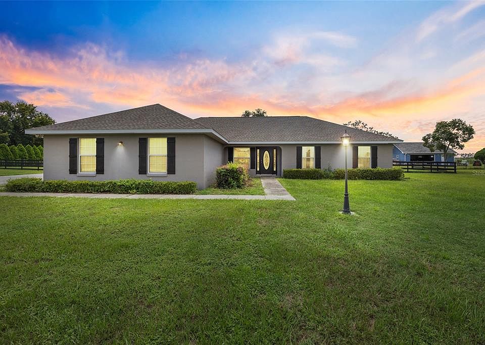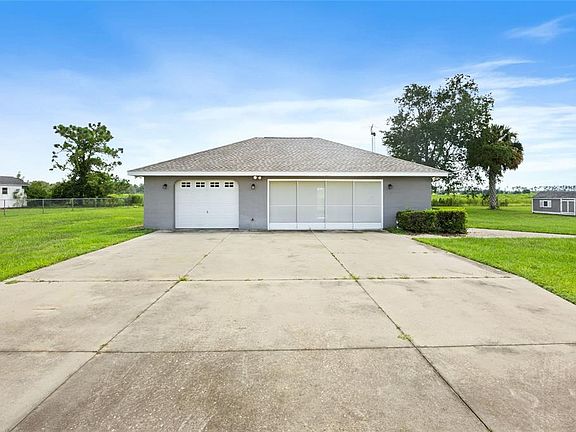 Looking for space, style, and a little fun? This 4 bed, 2 bath home on a full acre delivers it all! Inside, you’ll love the soaring ceilings, fresh paint in most rooms, and a spacious kitchen designed with the home chef in mind. The laundry room even comes with a built-in ironing board and utility sink for extra convenience. The primary suite boasts not one, but two spacious walk-in closets—perfect for keeping everything organized without compromising style. Step out back to enjoy a sparkling pool with sun deck and a screened in lanai — perfect for summer lunches or evening hangouts. The 2 car attached garage gives you everyday storage, but the real showstopper is the 3 car detached garage. Already equipped with plumbing, electricity, and its own bathroom, it’s ready to become anything you dream up: a car lover’s paradise, a future in-law suite, or the ultimate hangout spot for parties with friends (pool table, anyone?). Designed for convenience and comfort, the property also includes a full RV hookup with 50-amp service—ideal for luxury travel enthusiasts. Top it off with a long driveway, no rear neighbors (just the occasional cows in the pasture!), and a brand new 2025 roof! A/C replaced 2019, Hot Water heater replaced 2018— this property is the total package!