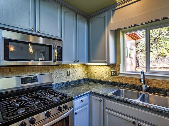 Two homes plus a studio on 5 acres! Main hs is approx 1550 sq ft w/ 2 bdrms 2 baths, laundry/pantry, air cond. Open floor plan w/ lots of natural light. 2nd hm (ADU) is approx 850 sq ft w/ lg kitch, 2 bdrms, laundry & full bath. Lg newer detached studio can be a music room, art/yoga studio or whatever you desire. Huge shop is approx 30x36'. 30 solar panels keep your electric bill down to a minimum. 16kw Generac generator included! Starlink internet is avail in this area.