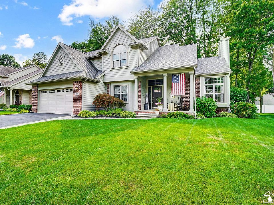 Welcome to this beautiful 4 bedroom home in desirable Stonegate subdivision. Enjoy the flagstone walkway and mature landscaping from the front porch; Inside, the gorgeous entry & cathedral ceilings show off this Great Room, featuring the wood burning fireplace & stone hearth, skylights and plenty of room for entertaining and gathering. Generous granite countertops, plentiful cupboards for storage, gorgeous wood flooring all highlight the eat-in kitchen for large gatherings or use the formal dining area for more intimate settings. The primary suite features two walk-in closets, separate soaking tub, and water closet w/shower. Partially finished basement great for movie & game nights, plus additional 15x10 home office/music room; 15x15 workshop area; and separate utility storage room. Enjoy seasonal evenings on the expansive deck overlooking the quiet backyard setting. The 2.5 car garage has additional space for another 9x9 workshop or toy storage area.