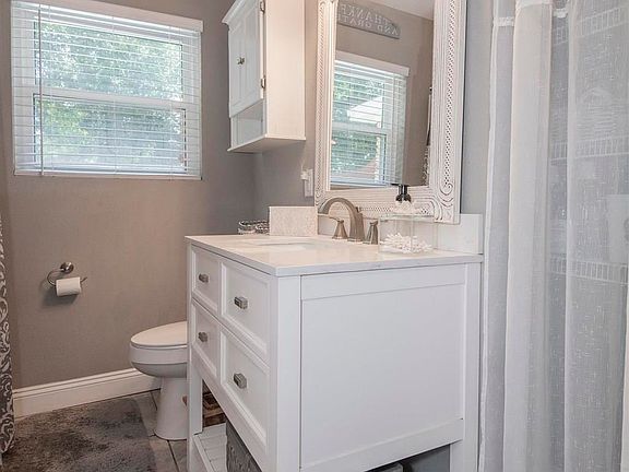 Adorable home located in West Jackson Terrace with a short drive to NAS/Corry Station, Pensacola State College, Navy and VA hospitals, and to the beaches and restaurants of Perdido Key. As you approach his home there is a sense of peace as you move along a wide street with mature oak trees among the properties. When you pull up to the house you will drive onto a newly poured concrete driveway (1050 sq. ft.) and will find a curved sidewalk leading to the front porch. Upon entering, there is a welcoming space that could be used as a spacious foyer, a formal dining room or office. To the left are steps down to a large den (18x11) with plenty of sunlight. The kitchen and breakfast room are combined with a sliding glass door to the shaded back yard. An 11 x 11 laundry room has a door to separate it from the kitchen. This room provides not only space for the washer and dryer but plenty of storage for your pantry items and other household objects. Down the hall you find a bath and three bedrooms. The back yard has a 14 x 14 concrete pad. This part of the backyard could be a relaxing area to unwind in the evening around a glowing firepit There is a 6 x 10 Tuff storage building. The yard has recently been enclosed by wood fencing and wide gates on each side of the house.
