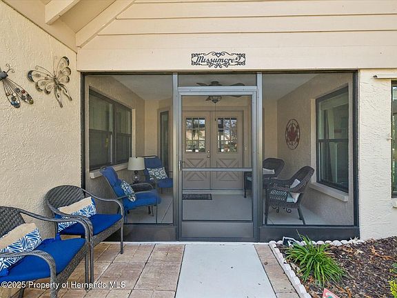 Welcome to your dream retreat in one of the most sought-after 55+ communities! This beautifully updated 2-bedroom, 2-bath villa is just 52 STEPS FROM YOUR SPARKLING PRIVATE VILLAGE POOL and offers a perfect blend of comfort, convenience, and style. Step inside to discover gorgeous new floors that flow throughout the spacious living areas, complemented by abundant natural light from the newly upgraded windows. The large bedrooms offer walk-in closets and exceptional storage, ensuring plenty of space for all your needs. The eat-in kitchen is perfect for casual dining. The large screened-in front porch is ideal for relaxing and enjoying Florida's beautiful weather. With a new roof and being FULLY FURNISHED, this home is truly move-in ready! HOA fees cover exterior paint and grounds maintenance including watering and maintaining irrigation. Beyond your doorstep, enjoy world-class amenities, including a 4 golf courses, fitness center, tennis courts, state of the art pickle ball courts, billiards, 2 community pools (one of which is geo-thermal), shuffle board, woodworking shop, library, media center, horse shoe pits, bocce ball, and endless social activities designed for an active and fun lifestyle. Don't miss this opportunity to own a stunning villa in a community that feels like a vacation every day!