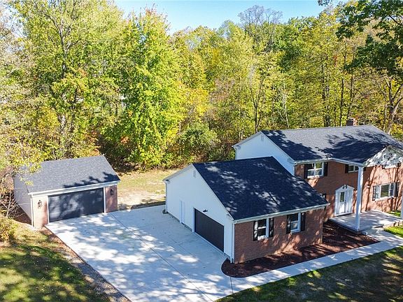 This stunning brick colonial on Tanglewood sits on nearly an acre and has been fully updated inside and out. Featuring a new roof, new windows, new concrete garage and apron, new sidewalks, fresh landscaping beds, newly paved front porch, new back deck, updated outdoor lighting, and a four car garage with brand new garage doors, every detail has been thoughtfully redone for modern living. Step inside and enjoy a home that feels brand new while retaining timeless character. The main floor offers a bright and open layout with all-new vinyl flooring, a spacious family room with a floor-to-ceiling brick fireplace and built-in book shelves, and a sunroom addition with sliding glass doors leading to a large new deck. The completely remodeled kitchen features new cabinetry, butcher block counters, stainless steel appliances, a tile backsplash, wainscoting, and access to the deck—perfect for entertaining. A formal dining room with new chandelier and wainscoting, a powder room with quartz vanity, and a large laundry room complete the first floor. Upstairs, you’ll find refinished hardwood throughout and four spacious bedrooms. The luxurious master suite includes a large walk-in closet with custom built-ins and a brand-new bath featuring dual quartz vanities, a fully tiled shower with two shower heads, and modern finishes. The second full bath is just as impressive, with a deep soaking tub, quartz vanities, and custom tile details.