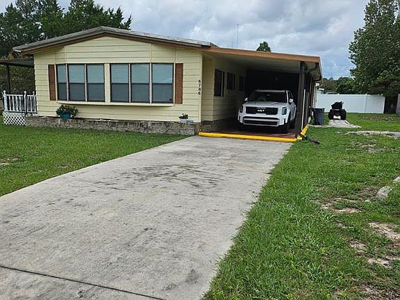 This move-in ready 2-bedroom, 2-bath home features an open layout with laminate stone countertops, new cabinets, and updated vinyl tile in the bathrooms. Enjoy fresh carpet in the bedrooms, a screened lanai with vinyl windows, and peace of mind with a 2017 metal roof, 2016 A/C, and newer water heater making financing and obtaining insurance a breeze. Recent 4 point inspection is available. Nestled in a quiet neighborhood just minutes from downtown Ocala and right behind Silver Springs State Park — with no lot rent, no HOA — this home offers comfort, convenience, and value all in one!