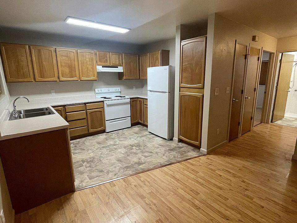 Spacious and inviting updated 2-bedroom, 1-bathroom home located in quiet Bonners Ferry, ID. This thoughtfully designed apartment offers a bright, open layout where the kitchen, dining, and living areas flow together seamlessly perfect for both relaxing and entertaining. Conveniently close to shopping, restaurants, grocery shopping and parks. This is a top floor apartment. Outside stairs to access. Only two driveway spots available per unit and no parking along street across from unit. Units include refrigerator, oven, dishwasher, washer and dryer. Tenant is responsible for snow removal of own porch/deck/outdoor stairs.