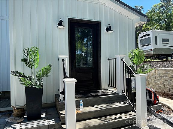 This Nearly New Construction Waterfront Ranch home offers over 233 feet of shoreline in one of the Largest Big-Water views on Lake Wylie! It blends modern updates with charming character from the original home, including large wood-beamed cathedral ceilings. It captures stunning panoramic water views, along with spacious patios overlooking the big water! Get your Lake Toys ready with a new covered stationary Dock & Boat Lift! Have the freedom with Privacy and No HOA! Home sits on nearly on a 1 acre main-channel waterfront lot w/ too many upgrades to list including new roof, septic, well, windows, high-end quartz counter tops in kitchen & baths, & the list goes on. The large chef's kitchen features stainless steel appliances, high-end custom cabinetry, generous counter space w/ a massive breakfast bar. The primary suite includes an en-suite bath, a large tile shower, a roomy closet, and private access to a patio w/ a fire pit. This home is close to all the lake lifestyle conveniences, top Dining, and shopping, while being in a Top Tier School District that is only 20-25 minutes from Uptown Charlotte.