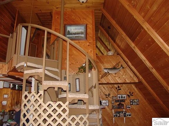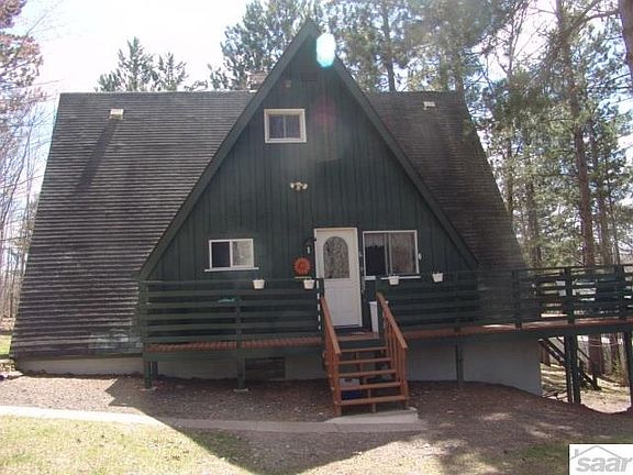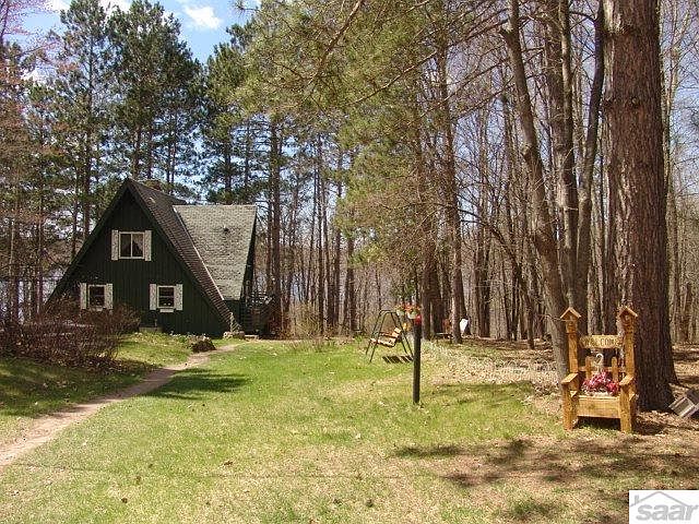 From your deck, you have a beautiful view of Half Moon lake, Two story 4 sided A frame home gives views all around the property. This property will make a nice home or cabin. Two car garage and storage shed allows for lots of room for outdoor toys. Fully wooded lot. And the mature trees allow for privacy from the town road. There is a large bonus room in the basement, A sauna hook-up in the basement-this room is being used for storage. Newly remodeled master bath. Poured slab for a future shed. The home and outbuildings have endless storage possibilities.