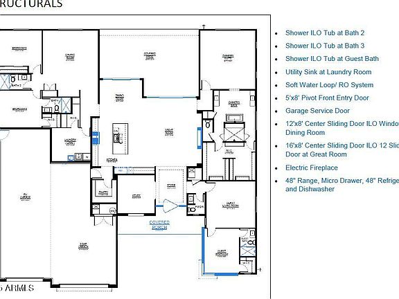 Choose Your Own Options! Spec-home to be constructed. This luxury home features an Iron entry door, Island kitchen with Wolf/Subzero appliance package- 48'' gas range, micro drawer and built-in 48'' refrigerator. Property includes a paver driveway, oversized three-car tandem garage, and 49' RV garage, ideal for car collectors and RV enthusiasts. The plan includes four bedrooms plus an office, 4.5 bathrooms, a grand guest suite with its own living area, and an upscale owner's suite with a freestanding tub, walk-through double shower, and oversized walk-in closet. Details such as 90/10 smooth contemporary wall finish, 8' doors, elevated ceilings, 2x6 ext. walls, post tension foundation, spray foam insulation exemplify upscale living. Features, Photos & options are from a completed model.