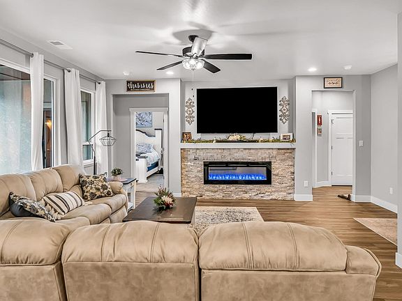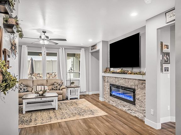 Better than new with no steps!!! Welcome to this beautiful 3 Bed / 2 Bath home located in the Arabesque subdivision in the Northeast area of Grand Junction. Beautiful stucco and stone work accent the exterior of the home making this a real show stopper. Upon entering the home you will instantly notice the beautiful windows that allow an abundance of natural sunlight into the living area. The open and expansive Kitchen / Living Room has a doorway leading onto a beautiful oversized, partially covered patio making for a perfect entertainment space. The kitchen has a gas stove, granite countertops, a farmhouse sink and a walk-in pantry with farm style sliding door. The Living Room has an electric fireplace with adjustable lighting. The home includes LVT flooring throughout the main area and plush carpet in the bedrooms. The front and backyard of the home is xeriscaped with the exception of a small area of grass in the back. Gorgeous rocks are stacked and line the back fence area providing a beautiful backdrop. The yard is also fully fenced. Irrigation water is available.