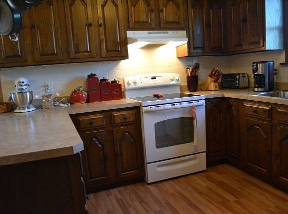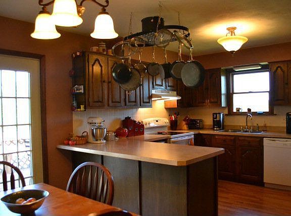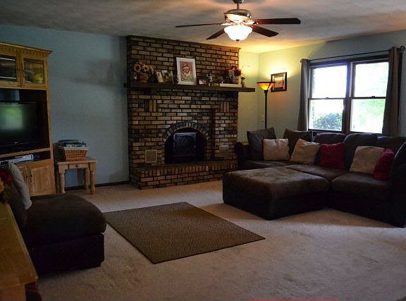 Very nicely kept & updated ranch, 3 sides brick. Spacious living room complete with brick fireplace, beautifully updated kitchen with newer cabinets, countertops and atrium door to large deck. Nicely updated bathrooms with newer vanities, tub enclosure, mirrors, and flooring. Some new light fixtures and ceiling fans throughout. Huge yard, great for kids and garden spot. Shed in back stays. Garage down is not currently used as garage and is not easily accessible due to shed.