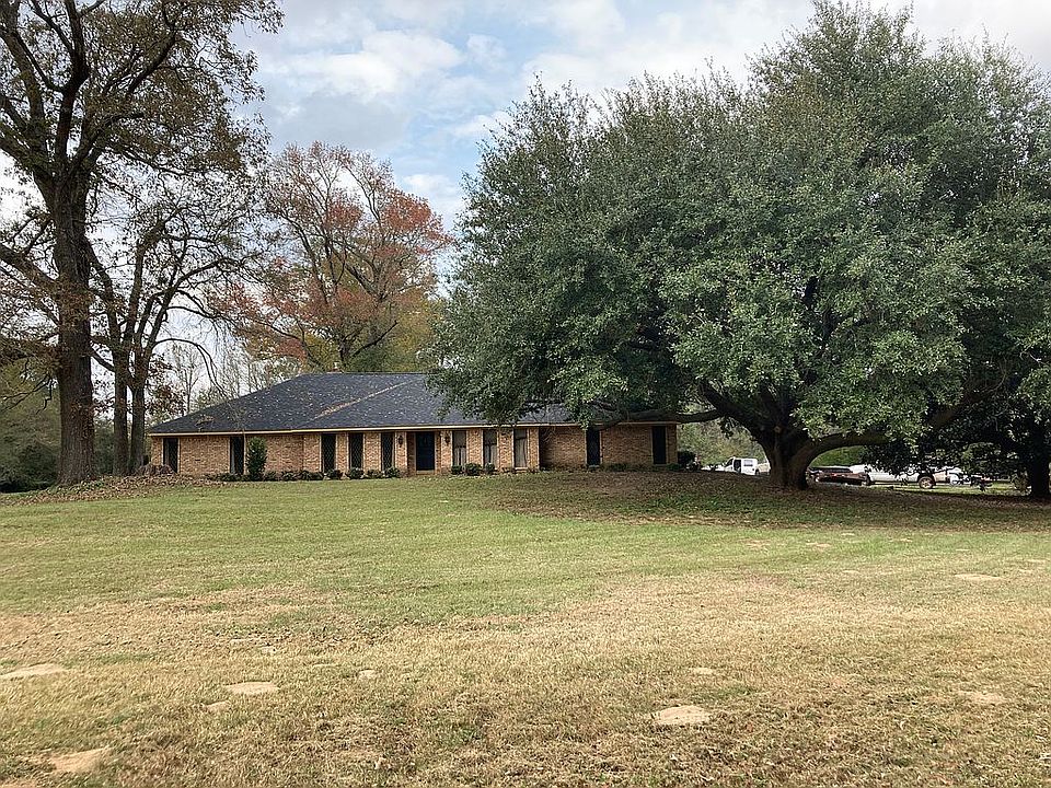 Three bedroom two bath brick on concrete slab, bonus room for office or library, beautiful patio for entertaining, leaded glass windows on front, sitting on over 3. Acres