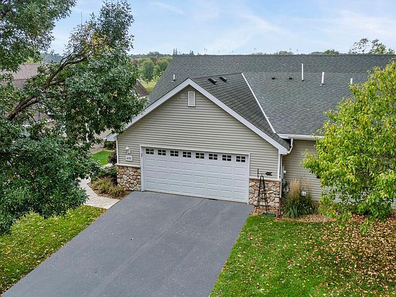 Largest town home in the development, backing up to a pond and wetlands for total privacy. Huge main floor master suite and all living facilities on the main level. Large deck off the kitchen and patio off LL walkout basement. Enjoy the open layout with vaulted ceilings, SW facing 4 season room off the living room and a gas fireplace upstairs and down. Bright open kitchen with island and a new refrigerator and microwave. The finished walkout lower level has a huge family room, bedroom and bathroom. This home is close to the park, trails, shopping and just minutes from downtown Delano. Oversized 2 car garage and tons of storage space.