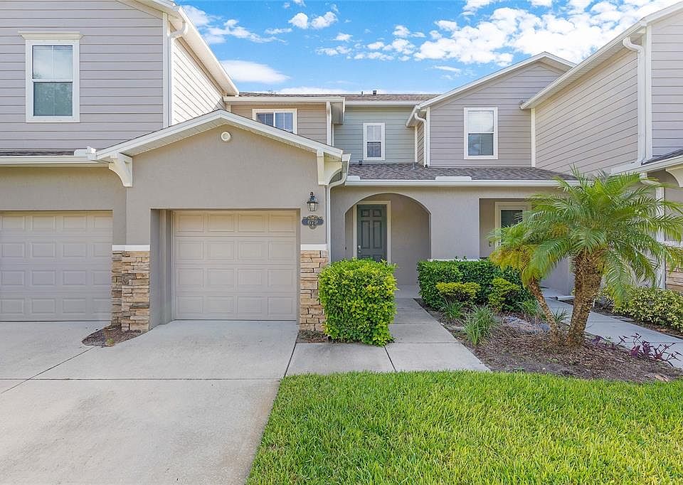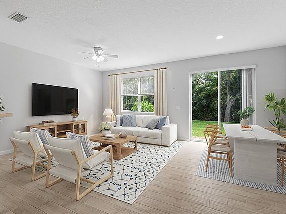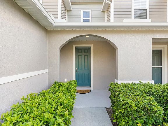 One or more photo(s) has been virtually staged. This charming two-bedroom, two-and-a-half-bath townhome that blends coastal style with modern comfort. Step inside to discover whitewashed wood-textured tile flooring that flows seamlessly throughout both levels, Second level flooring has a composite sound barrier underlayment that allows a quiet living atmosphere. Living and dining windows and sliders allow eastern sun drenched light inside which complement the walls painted in a calming pastel sea green. The carpeted stairwell leads to a serene primary suite that captures sweeping views of the lush backyard preserve, where majestic oaks and natural greenery create a true Old Florida ambiance and provide a sense of privacy. The kitchen is appointed with wood cabinetry and pull outs for easy reaching into lower cabinets. The home is complete with mini blinds on every window, while soaring 9.5-foot ceilings enhance the sense of space and light. Recent updates include a new roof, siding, paint and gutters (early 2025). A new water heater (April 2025), a serviced HVAC system with UV light for cleaner air (September 2025), and a full system replacement in August 2022. Outdoors, enjoy a covered front porch overlooking the lake or retreat to the backyard sanctuary with mature landscaping. The home also includes a one-car garage, hurricane shutters for peace of mind, and access to community amenities such as a sparkling pool, walking trail, and pet-friendly environment. Offering a blend of charm, comfort, and convenience, this residence captures the essence of relaxed coastal living. All assessments have been paid by the seller and are up to date.