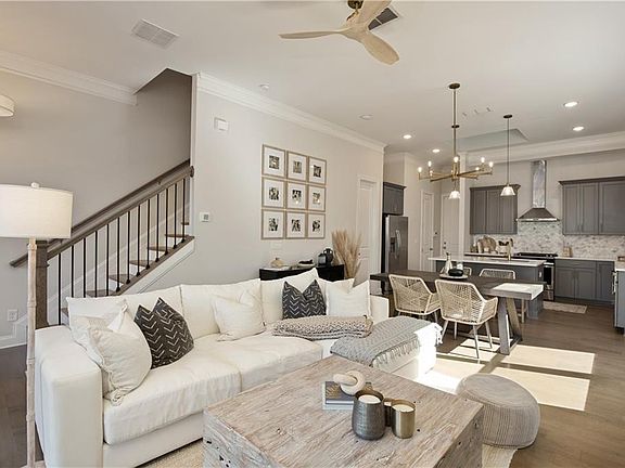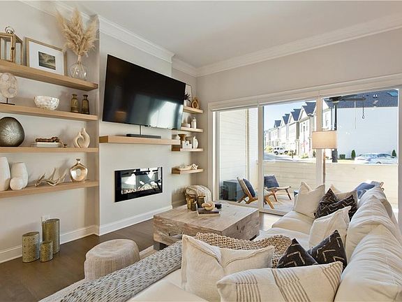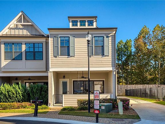 Welcome home. Get ready to fall in love with this beautifully customized end-unit townhome like no other in the community. Located just one mile from downtown Woodstock. This 3-bedroom, 2.5-bath home combines comfort, style, and convenience in one of the area’s most sought-after communities with amenities galore. The main level offers an open spacious living room that flows through magnificent sliding doors into your entertaining patio—perfect for seamless indoor-outdoor living. The kitchen features upgraded finishes and an oversized pantry that is a must see. New sink and fixture and a soaring skylight that bathes the kitchen in natural sunlight. Not to mention all the sun pouring in from the added windows being on an end unit. Sleek modern design complete with a fireplace to keep you cozy. As you continue to the upper level you will notice the railings extend all the way up and around the hallway. Upstairs features three bedrooms and a laundry room with custom shelving. The large primary suite offers a spacious tailored closet and a luxurious bathroom with expansive shower and double vanities. Hardwood floors extend through the hallway, which includes a versatile flex space at the top of the stairs, perfect for an office workspace. The extended 2 car garage offers plenty of room for storage and can easily accommodate 2 large SUV's or truck. The home is conveniently located across from guest parking. With thoughtful upgrades throughout and quick access to all that downtown Woodstock has to offer—shops, dining, and entertainment—this home blends modern living with everyday practicality.