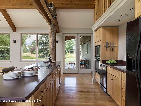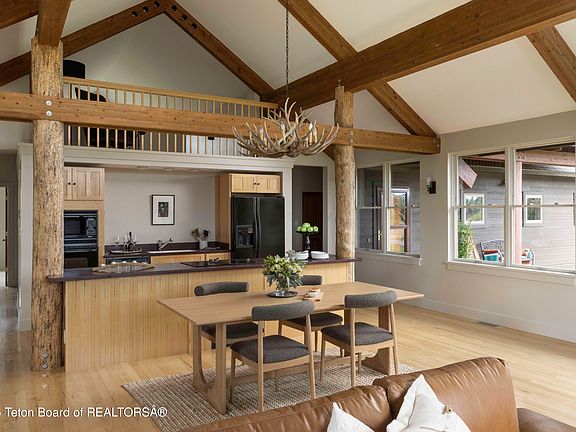 Experience the beauty of Wyoming from this stunning Dynia-designed home, on a serene one-acre lot in Bar B Bar Meadows. Surrounded by abundant open space, this residence offers mountain views and abundant wildlife right from your doorstep. Bar-B-Bar Meadows offers over 200 acres of dedicated open space, groomed for cross-country skiing in the winter and leisurely walks in the spring, summer and fall.