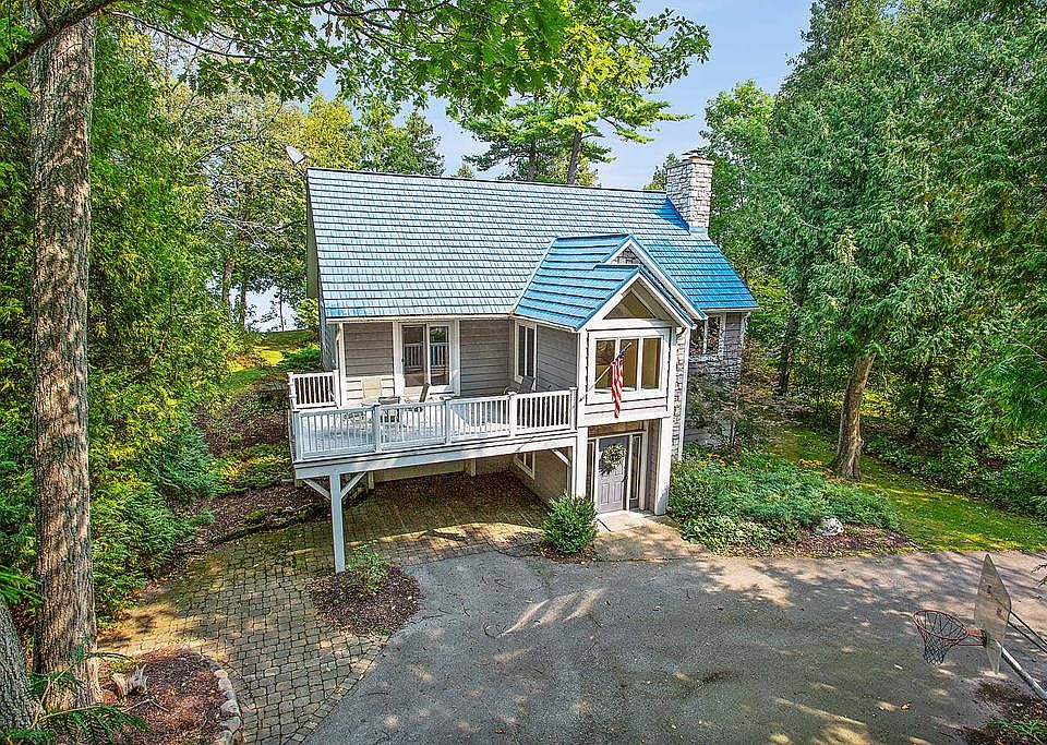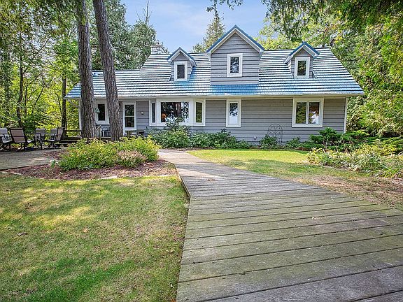 300 feet of stunning Green Bay waterfront! Charming 5 bedroom, 3 bath home with character. Wood ceiling and stone fireplace adds to the charm. One car attached garage and 2 car detached garage with a 15.6 x 24.4 studio that features a 9.6 x 13 loft area for office or extra living space. Large deck facing the road is 13.6 x 19.5. Quiet area of Door County - great for walking and biking. Includes tax parcels 0202001026 and 0202001027. Tax amount reflects total of all 3 parcels.