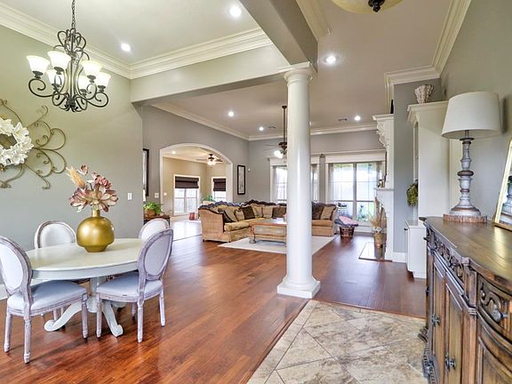 Custom-Built 4-Bedroom, 3-Bath Home in Southwest Lake Charles Near Graywood. This beautifully designed home offers an open floor plan with high-end finishes throughout. The spacious kitchen features custom wood cabinetry, granite countertops, a large center island with prep sink, and a generous keeping area just off the kitchen. Living spaces include 10- and 12-foot ceilings, wood and tile flooring, a fireplace, and triple crown molding for added elegance. The primary suite includes a spa-like bath with separate tub and shower, dual vanities, and his-and-hers sinks. Upstairs, a large bonus room provides the perfect space for a media room, game room, or even a 5th bedroom. Additional highlights include abundant closet space, a 2-car garage, and a large landscaped lot situated at the end of a quiet cul-de-sac—offering privacy and comfort in a desirable location.
