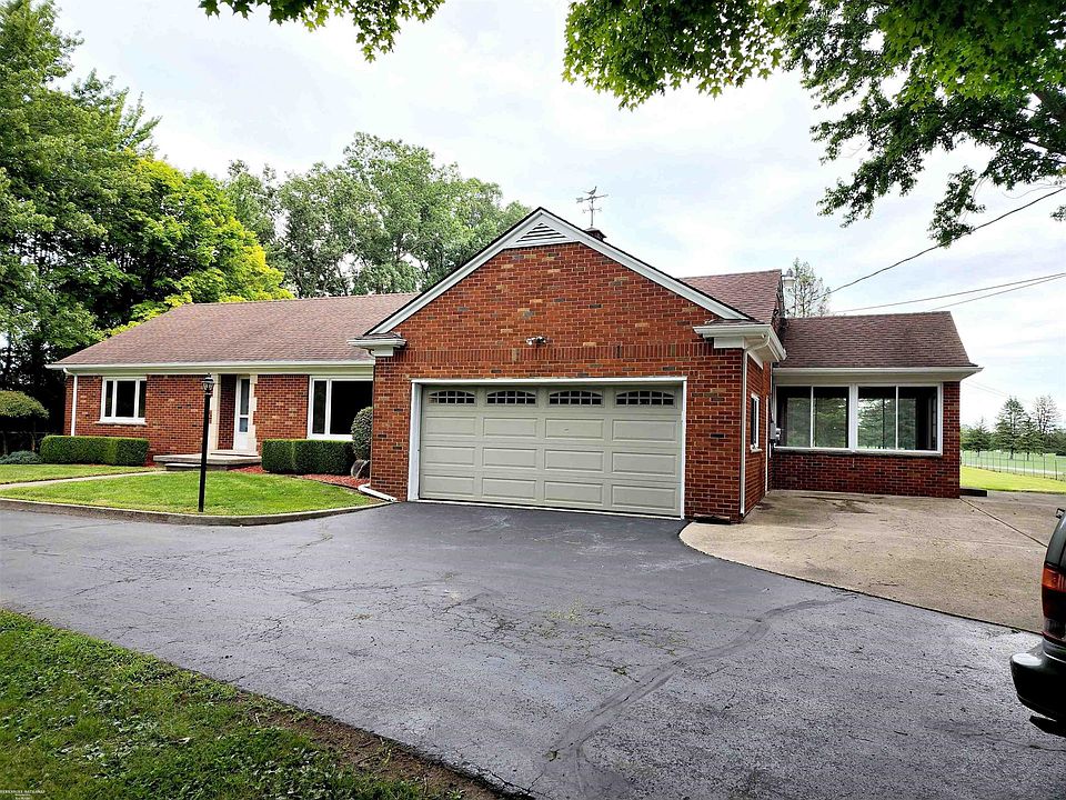 Beautifully maintained Solid well built ranch in a fantastic location! over 1600 square feet/smartly laid out floor plan. 3 Bedrooms, 2 full baths fully updated with new soaking tub, new vanities with granite, new fixtures, and ceramic and glass tile surround- gorgeous hardwood floors, luxury waterproof vinyl flooring. Porcelain tile planks, completely updated kitchen w/Kllearvue cabinets! Granite, brand new Whirlpool appliances. 4 season bonus room w/ pine wood ceiling, Pella Windows, natural fireplace, brand new furnace and A/C, water softener, plus house is hardwired for generator. B-Dry waterproof basement, 2 car Attached Garage, Plus Detached Garage w/ matching brick and a tremendous 2200 square foot pole barn (32x70)w/concrete, heat and 220 electric. All on 1 1/2 acre fully fenced, serene lot.