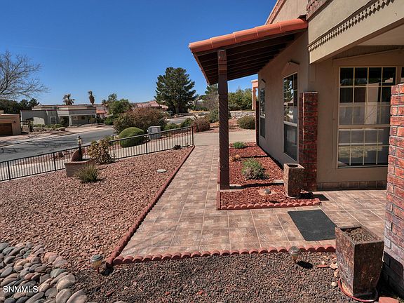 Nestled in the heart of the Picacho Hills community, this 2056 SF, 3 Bedroom 2 Bath golf front home boasts breathtaking views of Picacho and Organ Mountains. This property's beautifully landscaped backyard features a covered patio and gazebo. The expansive living room features beamed ceilings, and a fireplace, with a view of the Organ Mountains and city lights. The dining room provides an open entertainment space. The updated kitchen features granite countertops and refreshed cabinetry. Kitchen storage includes a pantry and cabinets above and below the large coffee bar. A recent upgrade to the master bath includes a large walk-in shower and dressing area. There are large closets throughout as well as a two-car garage with a separate air-conditioned workshop. Enjoy reduced electric bills with a 20-panel solar system. This home is just a short walk to the clubhouse and all its amenities. Unwind with incredible views from the front porch! Some photos are virtually staged.