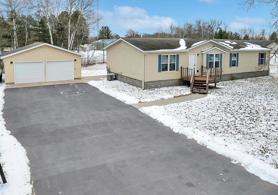 One level living tucked down a dead end road in the heart of Iron River. This 2004 manufactured home is ready for you to move in--with a welcoming entry, dining area, kitchen with breakfast bar, and spacious living room with views of the backyard, this living space is meant to be enjoyed. One side of the home hosts a master suite with walk-in closet and attached full bath (separate tub and shower). The other end of the house has a second bath and 3 additional bedrooms (one is currently being used as an office). Don't miss the laundry room and pantry just off the kitchen. The 24 x 24 garage is not insulated but has an electric heater. There is also an additional outbuilding--Half is set up as a heated workshop with 200 AMP service and the other half is used for storage. Property is connected to natural gas, municipal water, and municipal sewer. Crawlspace has been spray foam insulated, decks have been redone, and gutters were added. Property has new furnace and central air. Don't miss out on this great property!