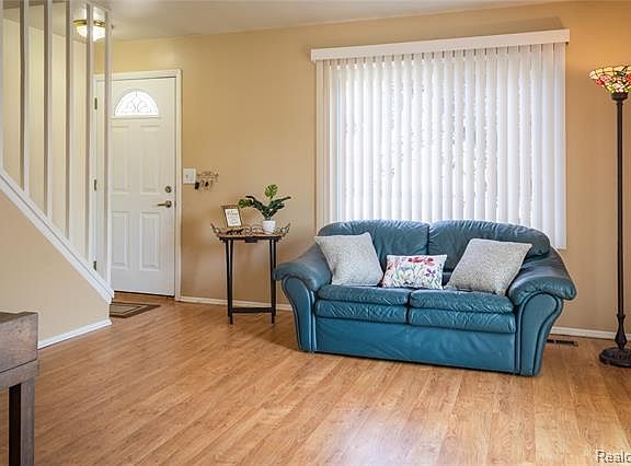 Enjoy this Adorable 2 Bed, 1.5 Bath END UNIT Townhouse Condo. BEST location in the Complex surrounded by many trees and offering much privacy. Plenty of living space on 1st fl. with nice size Living Room, Kitchen and Dining area. An abundance of natural light fills the main level with large Window and Doorwall in Living Room plus an additional Doorwall off Kitchen leading to Patio. Maintenance-free cement Patio with plenty of room for table and barbecue. The 1/2 Bath finishes off the 1st fl. 2 large Bedrooms w/spacious closets on 2nd fl. and nice size full Bath. Full Basement w/built-in walls for office or extra living space and separate Laundry area. Washer, Dryer and all Appliances included. Seller will provide a $1000 Carpet allowance. 2 assigned parking spots in front of the condo plus additional parking. Monthly association fee incl. Water. Great location, tucked in the back off of Village Green with quick access to Van Dyke freeway and a short walk to downtown Romeo!!