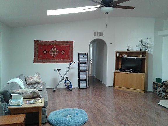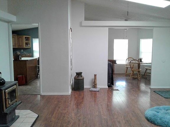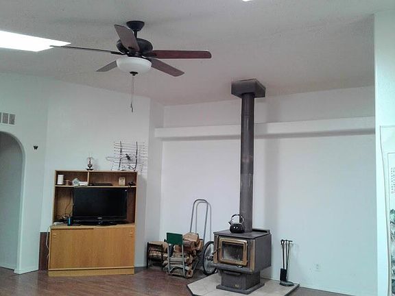 Spacious home with 1.18 acre. The front yard is fenced. The back is fenced on 3 sides. Large living room with raised ceiling. Dining room. Breakfast nook in kitchen. Tons of cabinets and counter top space. Cooking island. 3 large bedrooms. 1.75 baths. Skylights, ceiling fans. wood grain laminate. Covered RV pad with electric hook up and access to septic. Storage shed.