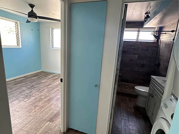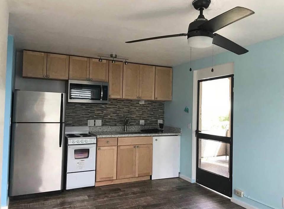 Great breeze, newly remodeled 1 bedroom, 1 bathroom, 1 stall parking (ample street parking) Apartment on 2nd Floor, Corner unit of 3 story complex. 12 units total in building, located in Aweoweo Beach park off of Au Street. Apartment is 700 steps to the beach. Updated appliances, tile floors, marble countertops, a/c in bedroom, ceiling fan in living room and bedroom. Coin washer / dryer located bottom floor for all units in building BUT we are the only unit in entire building with its OWN washer / dryer. Looking for single occupancy-business professional but willing / open to consider 2 people. Small Pet OK.