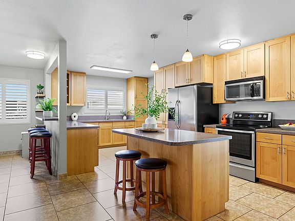 Well-placed islandGated for privacyWell-manicured backyardCovered lanaiPlantation shuttersOpen-concept kitchenFreshly painted bedrooms
