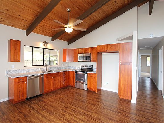 This is a lovely 3 bed/2 bath home in Waikoloa Village. It has a separate bonus room that can be used for an office. Granite countertops, vinyl plank flooring, fenced backyard, swing set and a large attached carport. Partially furnished with beds, couch, end tables. Vaulted ceilings and open concept.
