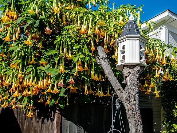 Swimming poolModern fixturesBlackberry and grape vinesEnormous gourmet kitchenTree lined streetYellow trumpet treeFresh interior paint