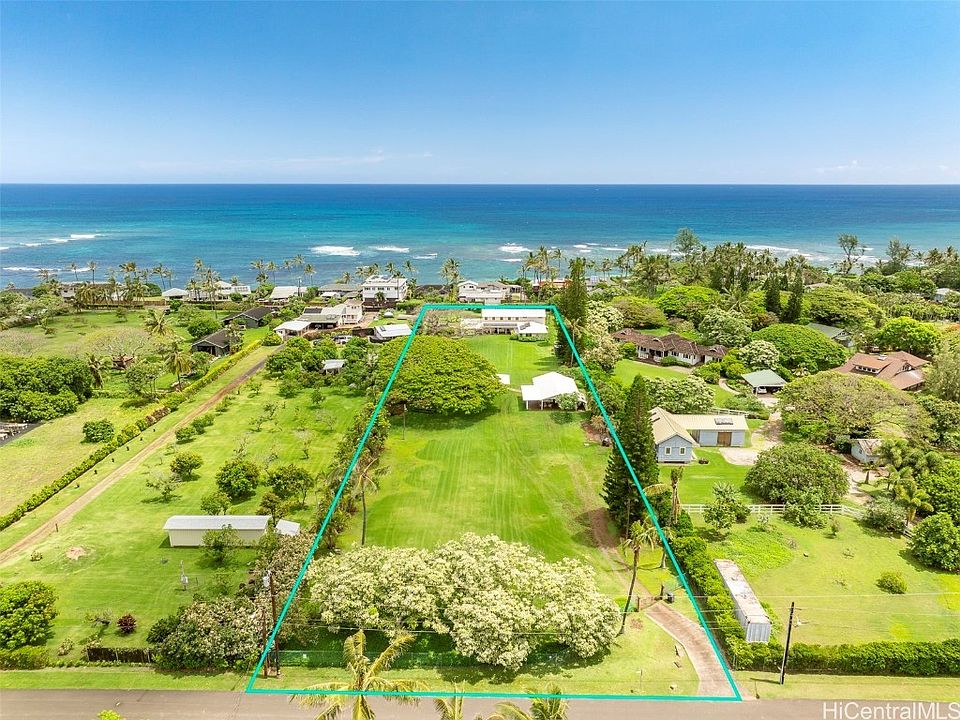 Wide Open Spaces… Located on one of Mokuleia’s premier streets, this exceptional property of just over 2-acres offers two street frontages & spans from coveted Crozier Dr to Kikou St. Enjoy stunning grounds, beautiful mature trees & vast park like lawn areas with picturesque Waianae Mountain Range & Mount Ka’ala views. A classic main residence with an open floor plan offers two large bedroom suites, a sizeable office/den w/ built in bookshelves & a country kitchen w/ a pass-through counter & dining alcove. The living room connects to a wonderful large, covered lanai & overlooks the stately grounds of this magical property. An attached garage + workshop is ideal for farm use. A separate two-bedroom cottage provides an ideal flex space & is accessed via the Kikou Street side of the property. The covered outdoor farm pavilion is ideally centered on the property & provides cool breezes & the perfect gathering/work spot. This one-of-a-kind property is a short distance to the beach access via Crozier Dr where one can enjoy beautiful sandy shores & an array of watersports year-round. Sale includes 68-682 Crozier Dr (TMK: 1-6-8-013-013) & 68-770 Crozier Dr #6 (TMK: 1-6-8-013-066-0006).