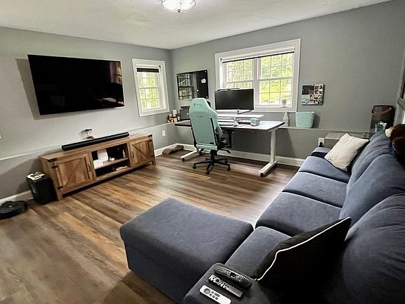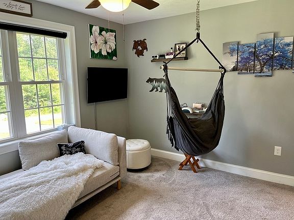 Beautiful newer modern home with all stainless steel appliances and granite countertops. Dining area off kitchen has slider off to deck. There is a gas fireplace to enjoy as well in the living room. All bedrooms have ceiling fans and wall to wall carpet. The larger bedroom has full bathroom with double sink vanity and shower. Bonus office/ family room in the basement has its own split for heat and cooling. This home also has water softener as well as a newly installed sulfur filtration system. 2 Car garage with extra area for storing as well as 240V outlet so you can charge an EV! This home sits on a 2.72 acre picturesque lot with added sprinkler system. You also have partial joint ownership/use of the pond for your enjoyment. Just in time to move in before school starts. Road to the driveway is plowed in the winter, just responsible for driveway. So much privacy with lots of woods, trails & yard to play in. Nothing to do but move in Easy show & go Sellers can accept anytime
