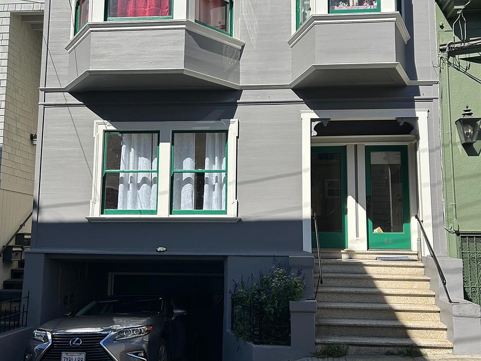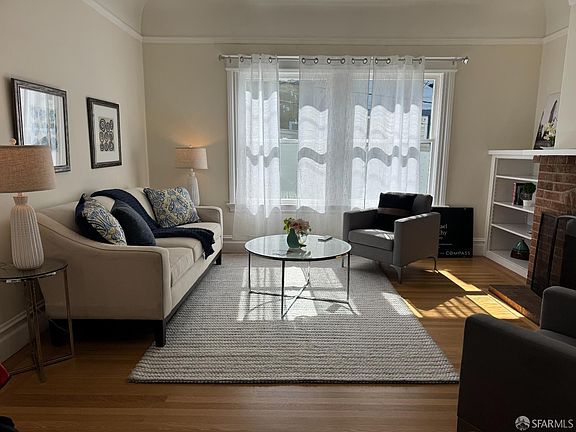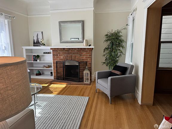 Outstanding Edwardian 2 full-floor flats with parking and roof deck with Golden Gate Bridge and Bay views. Lower flat is one-bedroom with a den (den is staged as second bedroom), formal dining room, living room with fireplace, large kitchen and full bathroom. Sparkling hardwood floors and lots of period detailing throughout. Top flat has two bedrooms, large kitchen, dining room, living room with bay windows, full bath and lots of light. Garage can accommodate one large car, has a washer/dryer room, storage room and additional storage. Fantastic location! Walk score of 98. Close to Polk St. shops and restaurants. Also close to Hyde St. and Union St. Located in the heartbeat of the city.