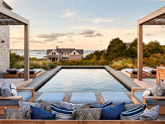 It is said that first impressions last well beyond the moment. Nowhere is this truer than when crossing the threshold of this extraordinary property and stepping into a real-life painting of Nantucket. With 180 degree harbor and town views from every vantage point, one is left overwhelmed with nostalgia, beauty and the magic of Nantucket. The private enclave, sited in prestigious Monomoy, provided the ideal setting for renowned architect Andrew Kotchen from Workshop APD, along with his clients, to imagine and masterfully design a show-stopping compound featuring three dwellings, on two parcels spanning 1.2 acres. The collaborative vision was brought to life, with unparalleled execution, by local talent Rob Reid and his team from Reid Builders. Not a single detail was missed as the teams crafted elegant and creative facades, artfully designed luxury interiors and custom curated furnishings. The variation in topography provided the perfect opportunity for a beachfront Main House with multiple sets of accordion glass walls evoking the feeling of being one with the harbor when open. The separate, two structure guest quarters, sited on a high knoll behind the Main house, affords unrivaled harbor views from virtually every room, as well as the infinity pool and decks. With a front row seat to stunning sunsets, July 4th fireworks, starry nights and ferries rounding Brant Point, this unrivaled estate delivers the ultimate Nantucket Experience.