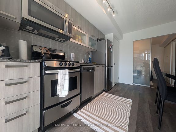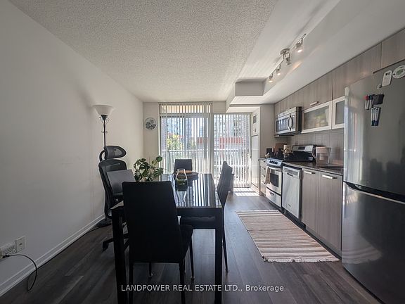 Welcome to this bright and spacious 1+Den condo in the heart of Queen West Village! Featuring a fantastic layout with large windows that flood the space with natural light, this unit offers a modern open-concept kitchen with granite countertops, stainless steel appliances, and ample storage. Step out onto your private balcony and enjoy the city views.The den, complete with a closet, can easily be converted into a second bedroom for added flexibility. Convenient ensuite laundry adds to the ease of living. Located just steps away from 24-hour streetcar service, LCBO, Starbucks, Metro, shops, and restaurants everything you need is right at your doorstep!