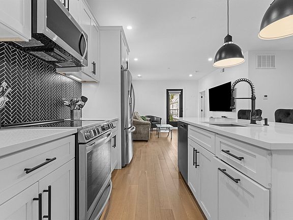 Live effortlessly in Unit 2 at 68 Armandine—a sun-filled, beautifully designed home with a flexible layout and high-end finishes throughout. High ceilings with recessed lighting, wide-plank hardwoods, & oversized windows set the tone for stylish living. The open-concept layout features a quartz island kitchen with shaker cabinetry, stainless LG appliances, and seamless flow into the living/dining areas—perfect for relaxing or entertaining. The spacious primary suite includes a walk-in closet, double vanity, & frameless glass shower. A generous second bedroom also offers a walk-in, while the third room is ideal for guests, a nursery, or home office. A second full bath & in-unit laundry add everyday convenience. TWO deeded covered parking spaces, private south-facing deck off the living area, & a massive deeded storage unit complete the package. Enjoy smart thermostats and energy-efficient heat pump systems. Just ½ mile to Ashmont T, near local dining, shopping, parks, and I-93 access.