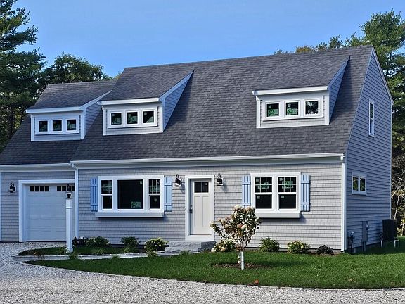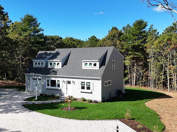 Nested on a private acre, this stunning, newly constructed Cape Cod-style home offers timeless charm and modern luxury. It features 3 spacious bedrooms and 2.5 baths, with a bonus family room upstairs. The first-floor primary suite boasts a walk-in closet and a spa-inspired private bath. The open-concept living space has a cozy gas fireplace and wide-plank hardwood floors. The gourmet kitchen includes quartz countertops, an island, custom tile backsplash, lighting, and premium GE Cafe appliances. A state-of-the-art HVAC system ensures year-round comfort. The private backyard features an outdoor shower, bluestone patio, and professionally landscaped grounds with irrigation. Minutes from pristine beaches, Washburn's Island, and Waquoit Bay. Convenient to shopping and dining at Mashpee Commons. This exceptional property is your perfect Cape escape.
