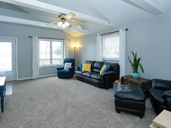 Year round Lake front home with 1475 sq ft on all sport Base Line Lake. The home features open concept Living/Dining room with beamed ceiling, galley kitchen with breakfast snack bar, wood burning fireplace insert in dining area, full bath with laundry and four very generous bedrooms (one used as a studio).There is room for double bunk beds in the bedrooms if you wanted to sleep lots of guests! Several closets for storage. Spacious deck off living room for summer cook outs or sitting and enjoying the view. Included are two garden sheds, Kayak/Canoe rack and the dock. Home is wired for a generator but the generator is reserved. Consumer Natural Gas is attached to the house.