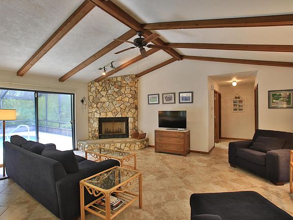 Ponce Inlet POOL Home on very private cul de sac!!! Nestled among the live oaks on a very private street in the wonderful town of Ponce Inlet is this fabulous 3 bedroom 2 bath concrete block home. The kitchen sits in the middle of the house allowing for the utmost privacy of the guest bedrooms from the master. Sliders from the living room, dining area and master bedroom lead to the screened in pool enclosure surrounded by lush vegetation and a very private back yard. The rooms are large in this home and the home is in very good condition with a brand new HVAC system and a new septic system as of 4/2016. Walk to the neighborhood restaurants, the river, the lighthouse or the ocean! This is truly living in Paradise!! Come to see this home today!!!