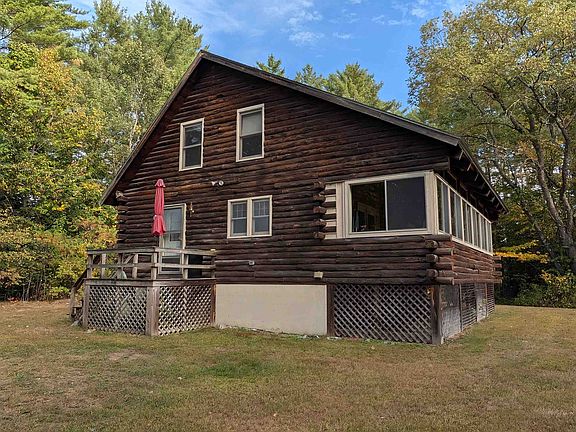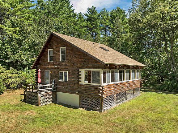 Continue to Show. Rustic Log Home hideaway in Sandwich, NH! Offered with most furniture and furnishings, this home is ready for your immediate enjoyment—whether you're seeking a weekend getaway or a full-time residence in Sandwich! Welcome to this cozy log home nestled into a level 1.5-acre lot w/290 feet of frontage. Surrounded by mature trees, this property offers peace, privacy, and a true connection to nature. Inside, the open-concept kitchen, dining, and living area features a soaring cathedral ceiling and warm wood tones throughout. A cozy TV nook and full 3/4 bath on the main level add comfort and convenience, while the expansive 32-foot long enclosed porch—facing south for all-day sun—serves as a flexible space for lounging, dining, or bonus sleeping quarters. Upstairs, an airy loft with twin beds overlooks the main living area, complemented by two bedrooms and a full 3/4 bath. The full, unfinished basement offers a laundry center, work bench, and storage space. Outside, the level yard is perfect for gatherings around the firepit, and corn hole! Located just 1.5 miles down a quiet gravel road is Bearcamp Pond—a 167-acre lake exclusive to Sandwich residents, ideal for swimming, paddle boarding, canoeing and kayaking! Residents also enjoy access to the town beach on iconic Squam Lake, made famous by the film "On Golden Pond". This is your chance to own a slice of Sandwich - a town known for its natural beauty, agricultural heritage, and timeless charm.
