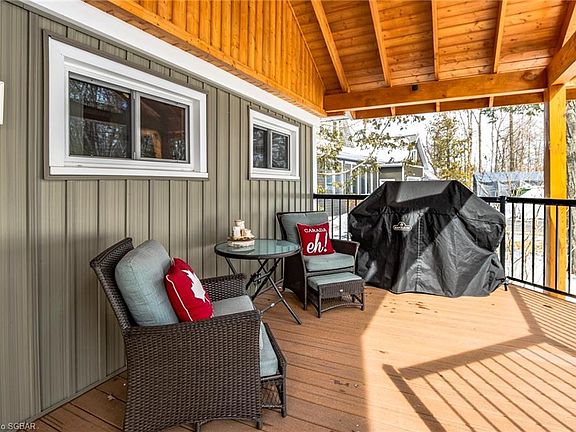 Beautiful turn key waterfront home or cottage on the shores of Georgian Bay. This property is located on Hogg's Bay, a quiet and protected Bay offering North Western exposure and gorgeous sunsets. Open concept layout with kitchen, dining area, living room with gas fireplace, 2 bedrooms and 3 piece bath. Lot's of outdoor space to enjoy including custom built covered porch area, walk out to large raised composite deck on the waterside with glass railing. Gradual gentle sloping grass area down to the waters edge, sandy entrance into water to swim or launch a small boat or kayak. Extensive dock system that will accommodate several boats, both large and small with 30 AMP shore power. Approximately 7 feet of depth at the end of the dock. Detached Garage/Workshop built in 2009 measures 28 feet x 16 feet. This property shows pride of ownership throughout and has been very well maintained and updated. Conveniently set up on all municipal services including water and sewer, natural gas and Bell Fibe Internet. A short drive to all amenities including shopping, restaurants and marina. Steps to a beautiful walking/biking trail system. Located 90 minutes from the GTA. Let's make your Georgian Bay dreams a reality!