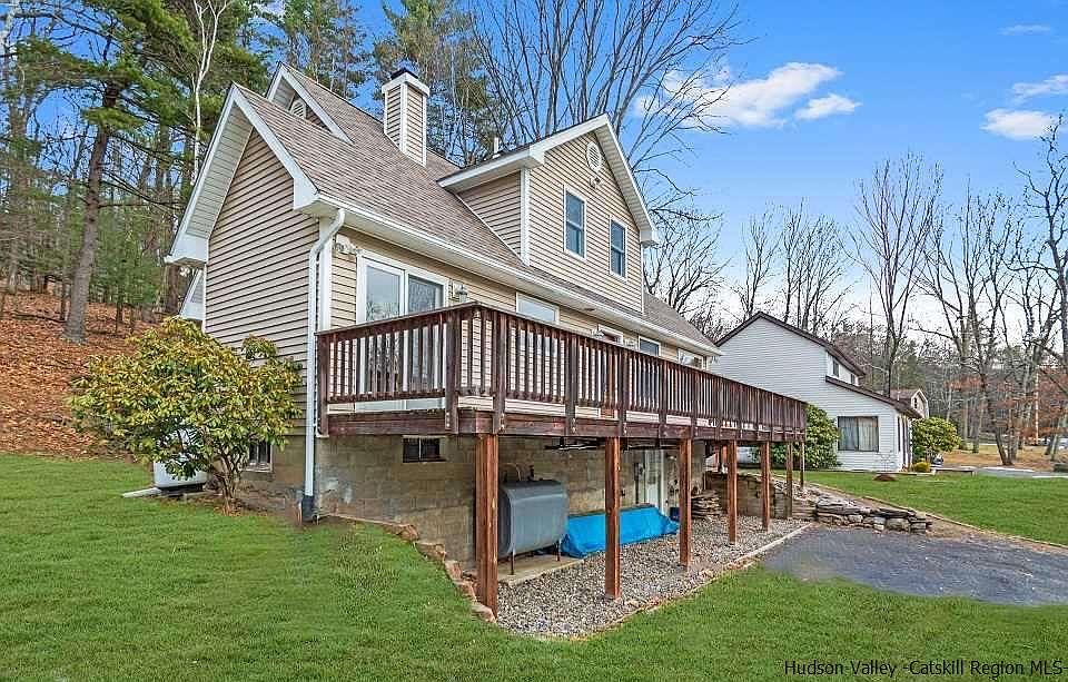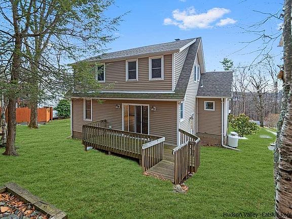 Set on a quiet country road graced with peek-a-boo views of The Ashokan Reservoir, this 2 BR/1.5BA Cape is just waiting for it's new owners. The first floor of the home boast an open floor living space with gleaming hardwood floors, clean lines and plenty of windows to bring in tons of natural light. The small bonus room on the first floor is an epic place for an at home office, providing a big picture window that provides a view of the Reservoir. Who doesn't want to work like that? The eat -in kitchen has been completely remodeled offering plenty of cabinets, counter space and another picture window set above the sink to again, get those peek-a-boo views of the reservoir. Sliding glass doors provide access to the deck that runs along the entire front of the house. Relax while enjoying every element of nature from the comfort or your own property. The second floor is home to two well-sized bedrooms, a big full bathroom and a bonus room that can be used for storage, as a studio, office, etc. The basement holds the utilities, washer/dryer and has plenty of room for storage or even a workshop. Just a 6 minute ride to the village of Woodstock. Hiking, skiing, shopping and entertainment all within a half hour, only 2 hours from NYC. This is a great full-time residence or second home.