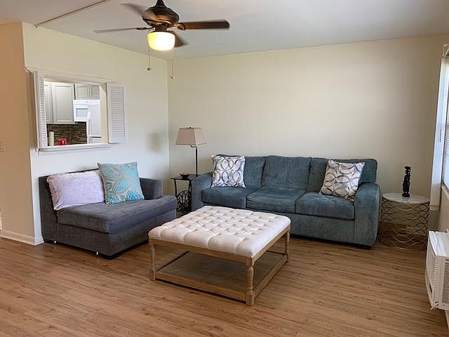 Beautifully updated unit. New kitchen cabinets, new appliances. New laminate flooring in Living and Bedroom. New tile in kitchen and bathrooms. Primary bath and half bath have updated vanities. Tub in primary bath is being re-glazed to look like new. Furniture can stay or go - Buyer choice. Laundry room on each floor with extra storage in laundry room area. Clubhouse offers LOTS of activities including, but not limited to, classes, workshops, lectures, movies, live theatre (during the Season), indoor pool, renovated fitness center, bus service around Century Village and around town. Daily bus to Publix. Beautiful expansive garden view from balcony. Sorry, association says no rentals.