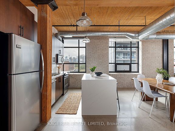 Welcome to unit 308 at 68 Broadview Ave, the most sought-after loft building in the east end. A stunning blend of historic charm & modern sophistication. Originally a pharmaceutical building from 1914, this loft was expertly converted in 2006 into spacious, true brick-and-beam residences that capture the essence of Toronto's industrial heritage with all the contemporary upgrades you could want. Key features include: 1,041 sq. ft. of thoughtfully designed interior space; soaring 11' ceilings enhance the loft-like feel; west-facing for abundant natural light, spectacular city views & breathtaking sunsets; rare private outdoor area; parking & locker. The kitchen has been recently upgraded with stunning quartz countertops, backsplash and a waterfall edge that runs over the island. You'll never run out of storage space as the kitchen features an entire wall of near floor to ceiling cabinets. While cooking or hosting from the kitchen you look out onto the expansive open-concept living space leaving plenty of room for a large dining area and living room. The spacious primary incudes custom closets and window coverings and an additional den could easily be enclosed and is the perfect work from home space. The 3pc bathroom has been extensively renovated with a new vanity and sleek walk-in shower. This is more than just a home its a statement. Whether youre relaxing on your balcony, hosting friends in the spacious living area, or simply soaking in the views, Unit 308 offers a lifestyle thats hard to match. 68 Broadview is well known for its wow factor from the moment you enter. The wide hallways & massive entry doors provide an experience and ensure pride of ownership. The rooftop party room offers incredible city & lake views and also enjoy the benefits of 24hr concierge services. Steps from the building you can hop on the street car for a quick commute downtown and minutes to the developing east end subway extension. This is the very best Queen East has to offer.