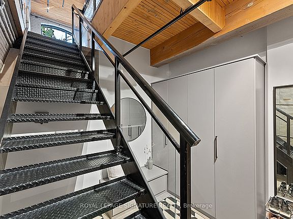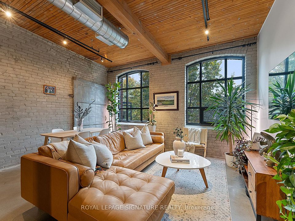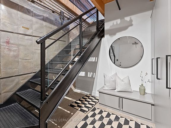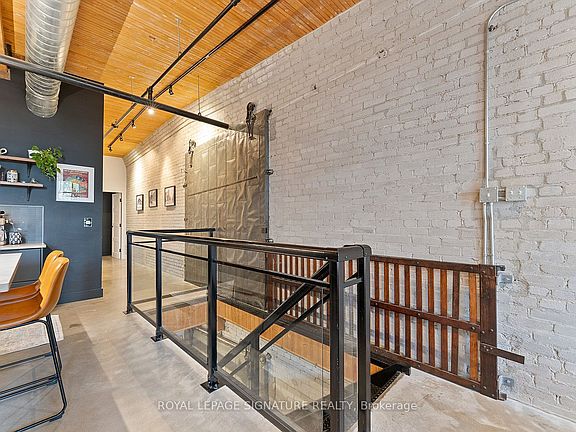 Welcome to Suite 430 at 68 Broadview Avenue, a rare loft-style residence in the iconic Broadview Lofts. Step into the foyer with built-in closets and a staircase leading to the main living area, where striking exposed brick and soaring ceilings create an authentic urban feel. The open-concept living and dining space offers a townhouse-like layout in the heart of the city, complemented by a sleek, modern kitchen with built-in appliances, ample cabinetry, and a dedicated breakfast area. The versatile second bedroom includes a built-in Murphy bed, ideal for guests or a home office space, and is serviced by a stylish 4pc bath. The unique primary bedroom also features exposed brick, generous closet space, and an open-concept shower design, adding a touch of industrial luxury. Enjoy your own private terrace perched on the 6th floor, perfect for morning coffee or evening entertaining. Set in vibrant Leslieville, just steps from trendy Queen Street's shops, restaurants, cafés, and transit. Experience urban living at its finest in one of Toronto's most sought-after neighbourhoods.