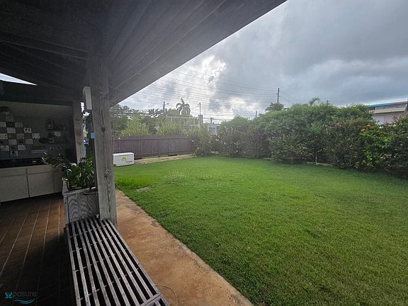 Single-story residence with high ceilings, a large lot, a double carport, and a spacious patio with a garden and gazebo. It features four bedrooms, two ensuite bathrooms, a large kitchen, and a family room. The garage features an aluminum door, a water cistern, and a generator. It's located steps from the Quebradillas shopping center and the town center. An appraisal is available, but the sale price is open to negotiation..
