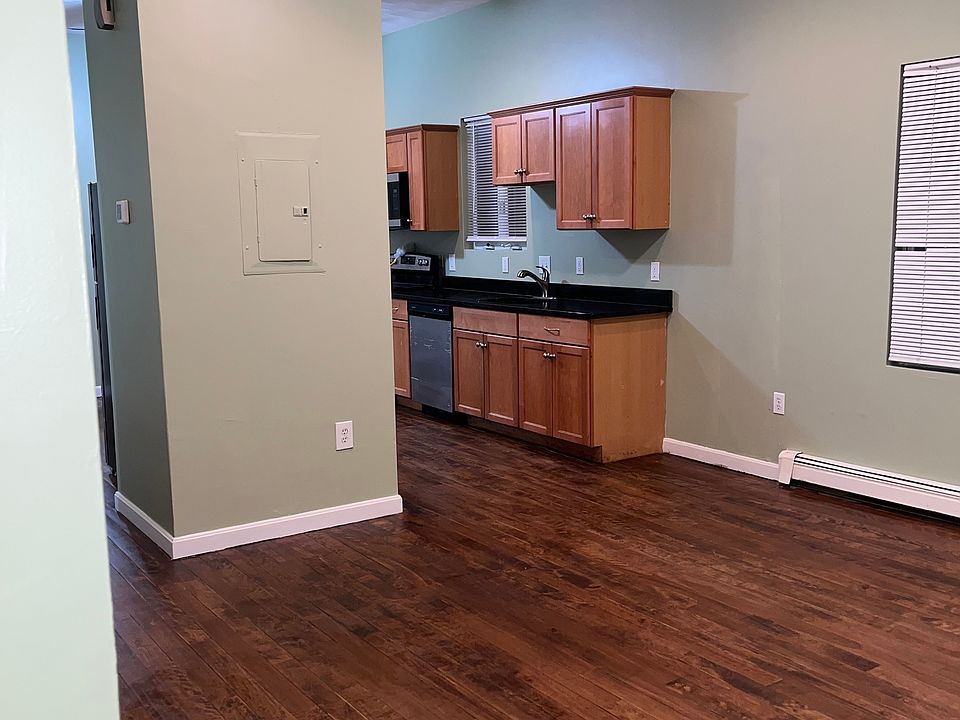 Refinished hardwood floorsFully renovated bathroomModern eat-in kitchen
