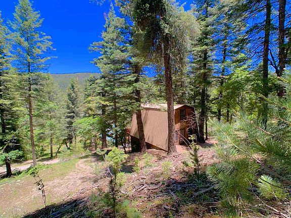Sweet cabin on over 1.5 acres in sought after area is a jewel. Rare six lots feature a sunny level meadow & forested slopes. Cabin sits in the center of the lots with parking up at the main level. Modified A-Frame is in nice condition, has freshly painted interior. U shaped kitchen has good counter space & storage. Living room with wood stove opens to deck in the tall trees with views across the canyon. Unfinished basement could be finished for nice additional living space. Offered furnished.