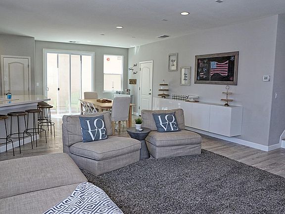 Entertainers Dream with Many Upgrades. Open and bright home tastefully updated with new kitchen cabinets and quartz counters. Built only one year ago, sellers are moving out of state and this home is ready for you to move in! Many upgrades, shows like a model home. High-end laminate floors through out the house make this easy to keep clean and sparkling! High efficiency HVAC, dual pane windows, water softener, whole house fan and finished garage makes this turn- key home perfect for your new family. Come and fall in love with this beautiful home. Quartz kitchen counters Custom cabinets Granite counters New laminate floors throughout Tile in bathroom and laundry room Living room pre-wired for surround sound Kitchen w/ separate surround sound Dual pane windows Wired network whole house Two car garage Manicured landscaping Laundry room