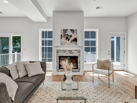 Beautiful new construction 2 bedroom 2 full bath condo just steps to West Newton Square. This open floor plan unit boasts a gorgeous kitchen with quartz counter tops, white shaker cabinets, stainless steel appliances and a large center island. There is a fire-placed living room that over looks a large private deeded deck, two spacious bedrooms Including a primary suite with primary bath, ample closet space and a 2nd full bath. Laundry in unit, deeded storage in basement, 1 deeded covered parking spot plus second parking spot as well. Walking distance to commuter train, express bus, restaurants and shops. This is a fantastic condo and a must see!
