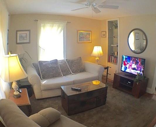 A front sun-filled 3-season porch invites you into this storybook New England colonial! Make your way into the living room and notice the original hardwood floors. Step into the newly renovated eat-in-kitchen with beautiful beamed ceilings. The second level offers 2 bedrooms and 1 full bath. Master features a walk-in closet with custom shelving. Second bedroom offers original hardwood floors and a one-of-a-kind built-in wardrobe. The beautifully renovated bathroom features a new vanity and radiant heated tile floors! The rear 3-season porch overlooks the peaceful backyard, which offers a brick patio and a matching custom-built storage shed. The basement provides abundant storage-space with wall-lined shelving. Convenient location close to high school, Clark Pond, track, tennis courts, town center, commuter rail, town pool (includes separate kiddie pool), and playground. Easy access to Routes 1 and I-95. Close to shopping and Patriot Place!